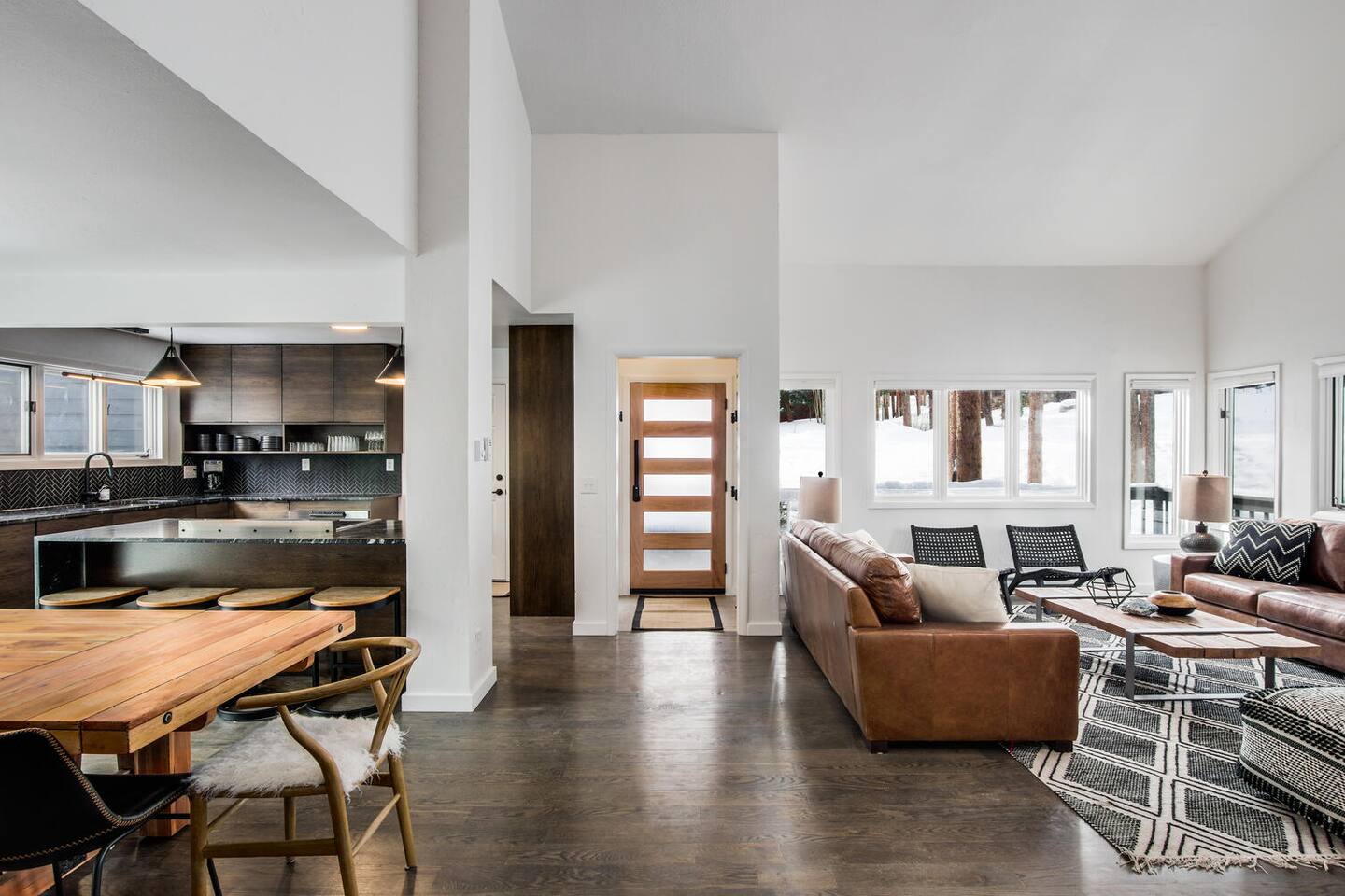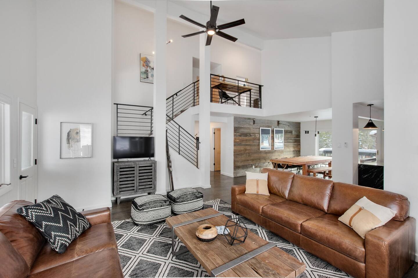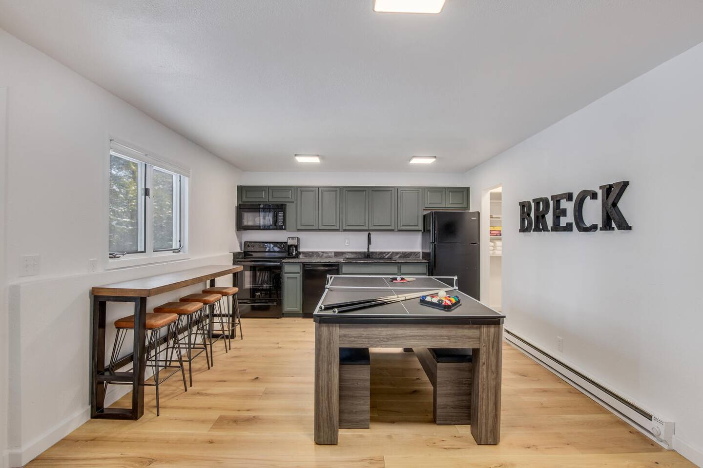 Designed in a hip mountain-modern style, this is the perfect home for large groups with enough private space for everyone. Tons of bedrooms/bathrooms, three distinct living areas for different parts of the family to play and socialize. Hot tub, game table, three TVs will keep everyone entertained. The main kitchen is fully stocked to prep a big meal where you can share at the large dining room table. Also, close to town, trails and skiing for easy access.