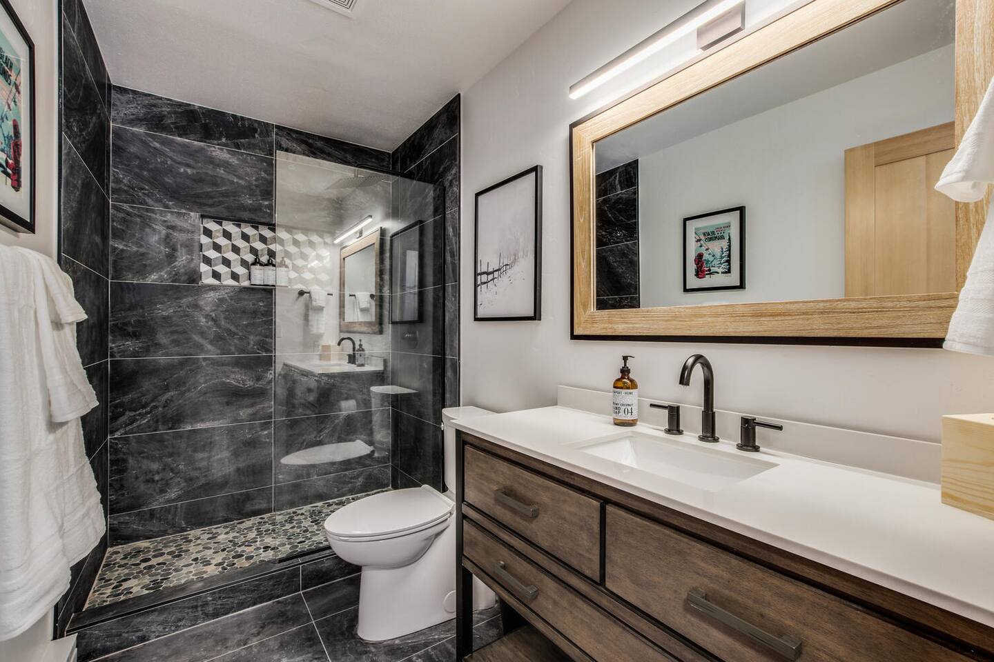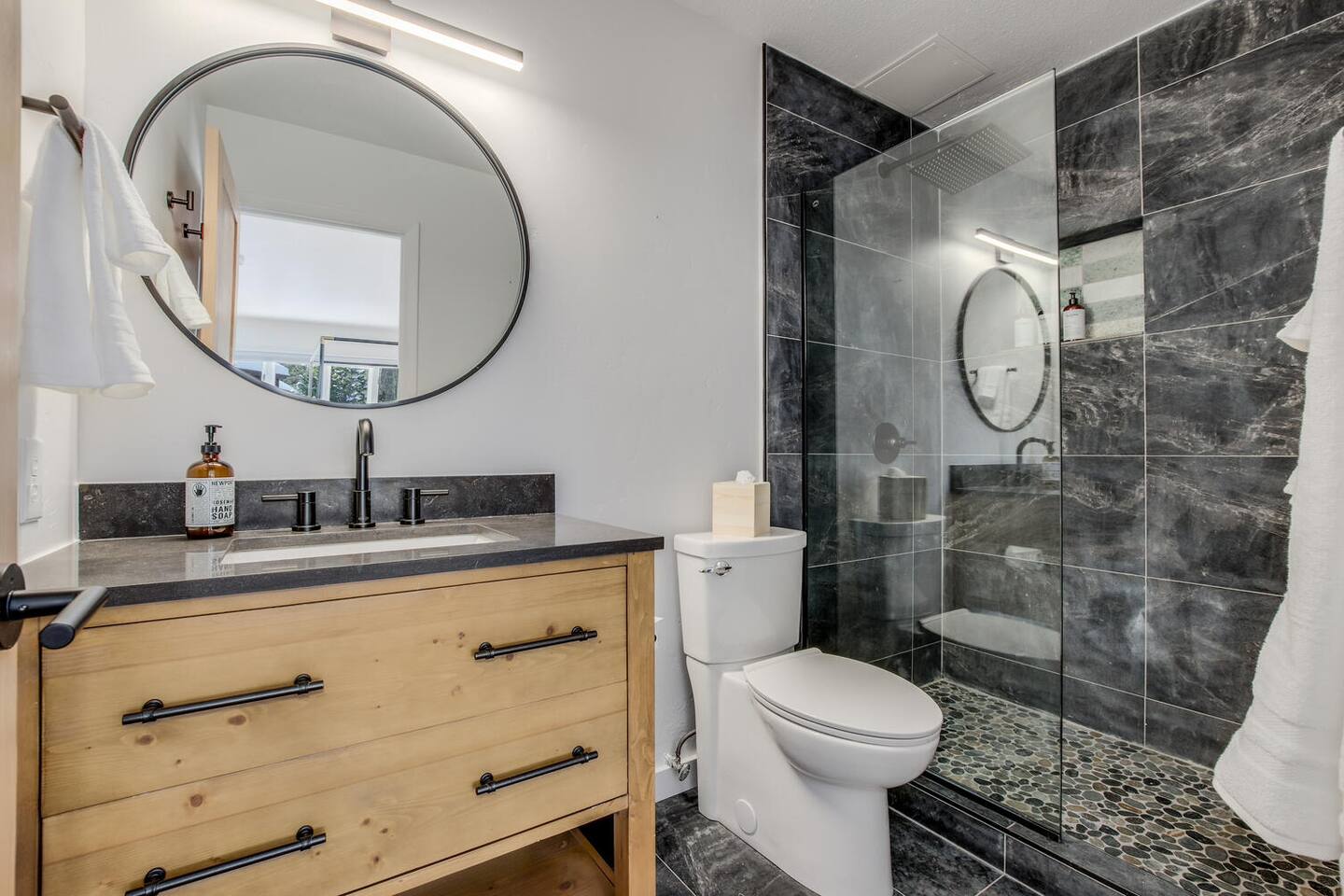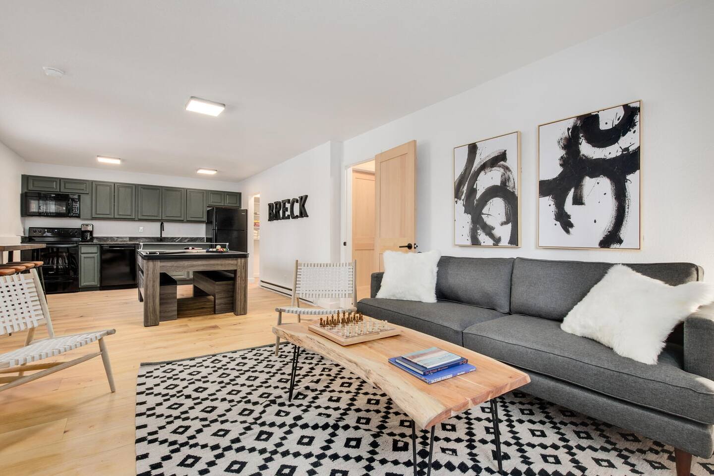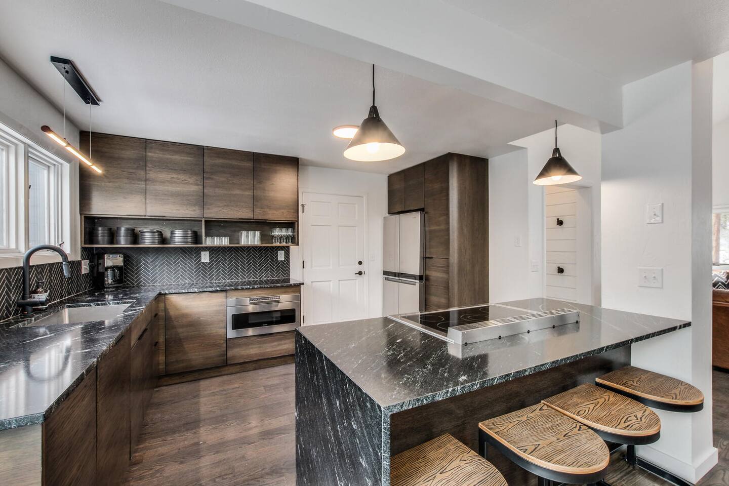 Designed in a hip mountain-modern style, this is the perfect home for large groups with enough private space for everyone. Tons of bedrooms/bathrooms, three distinct living areas for different parts of the family to play and socialize. Hot tub, game table, three TVs will keep everyone entertained. The main kitchen is fully stocked to prep a big meal where you can share at the large dining room table. Also, close to town, trails and skiing for easy access.