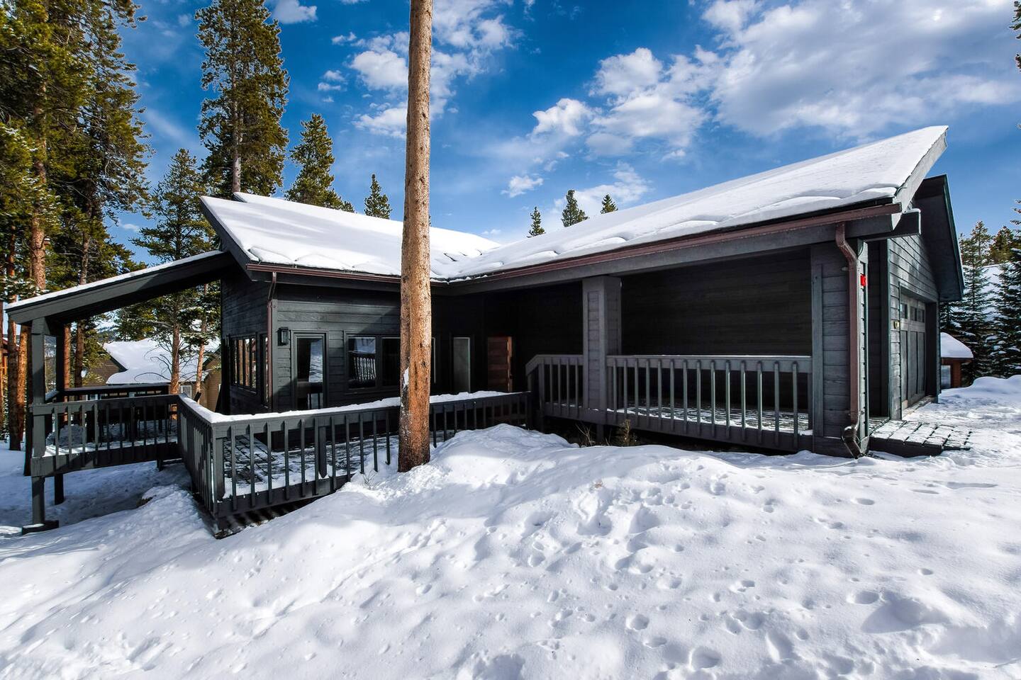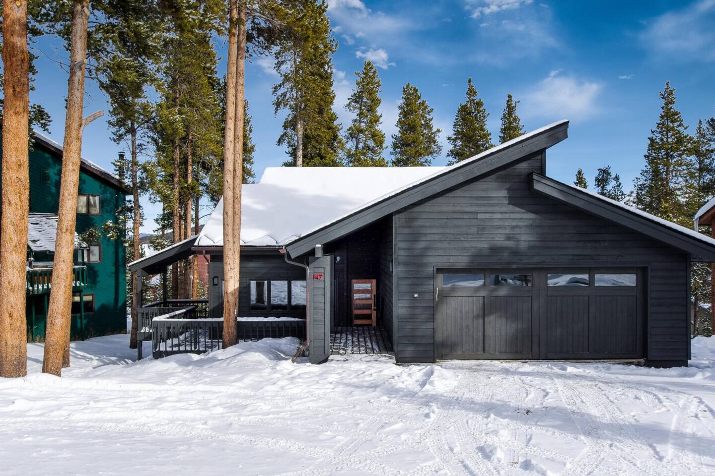 Located just a mile from town in Warrior's Mark West, the house is a 1.5 mile drive to the shops and restaurants of Main Street. It is about 2 miles to the base of Peak 9 of the ski area. During peak season (late December to late March), there is a free shuttle that stops about 100 yards from the house. Or, if you are brave, there is a ski trail through the woods to the resort (you must be a black diamond skier to ski back to the house). In the summer, this serves as a great hiking trail to town or up the mountains.