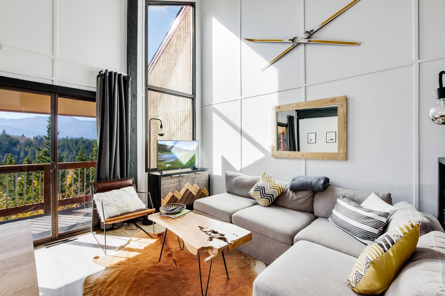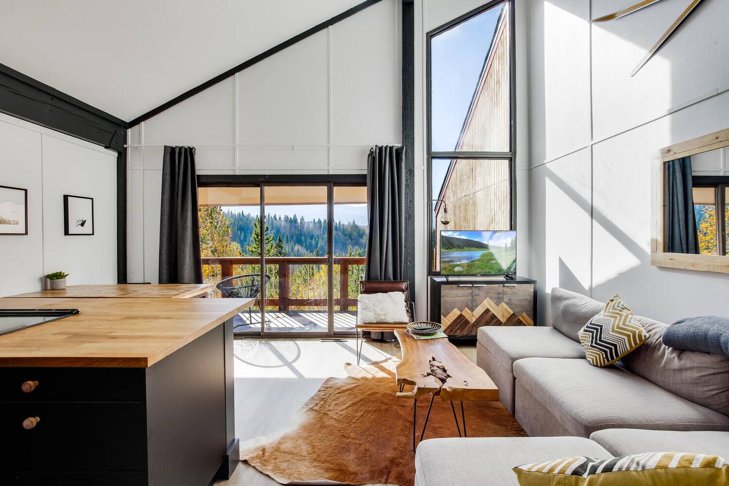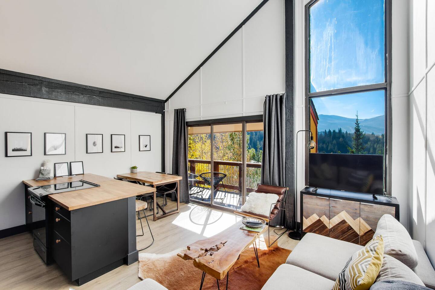 Decked out in a hip alpine-modern style, this small condo has everything you need for a perfect ski vacation or summer getaway. Watch the sunset from the balcony that is nestled among the trees or wake up to views of the ski area and choose your run for the day. This place is way cooler than your typical ski condo. Hiking, biking and cross-country trails are nearby. It is 2.5 miles to town and NOT ski-in ski-out, but there is a free bus to town/skiing.