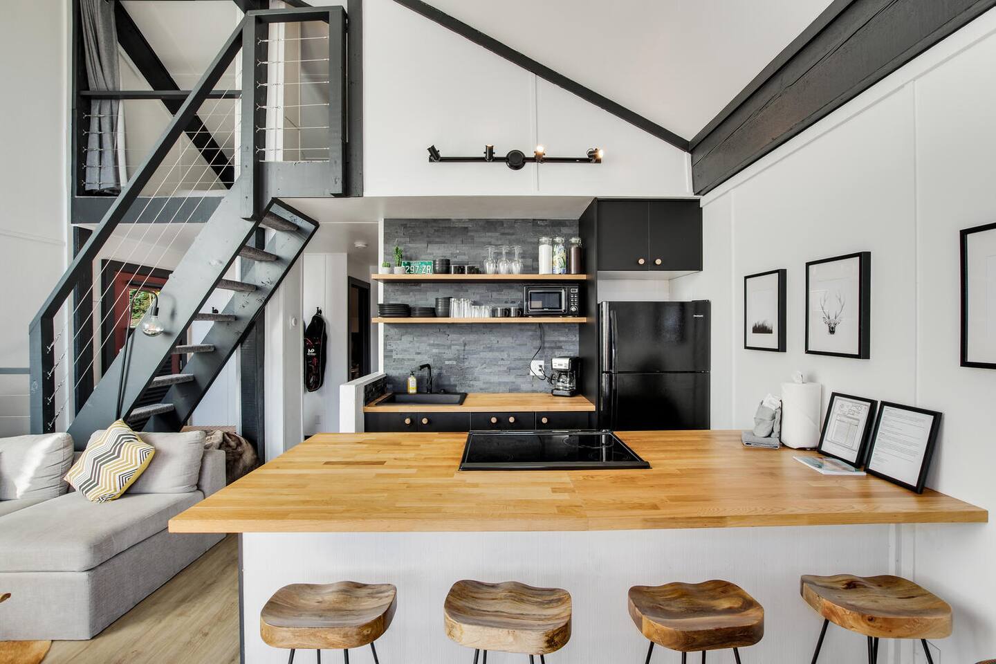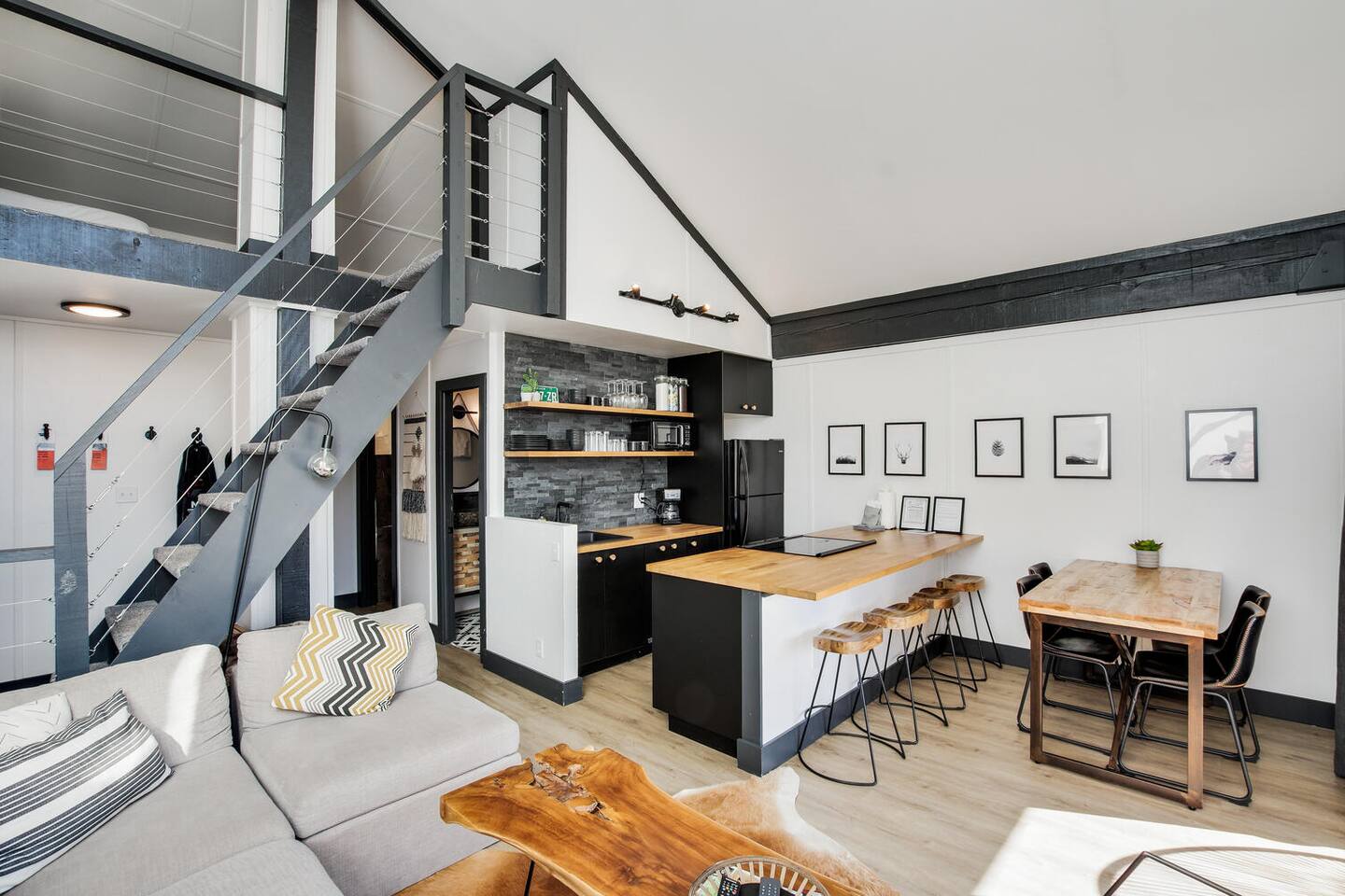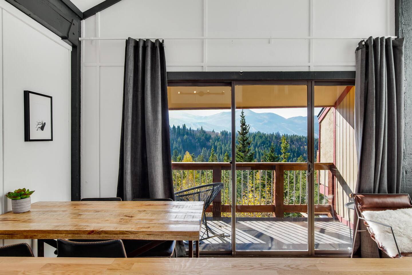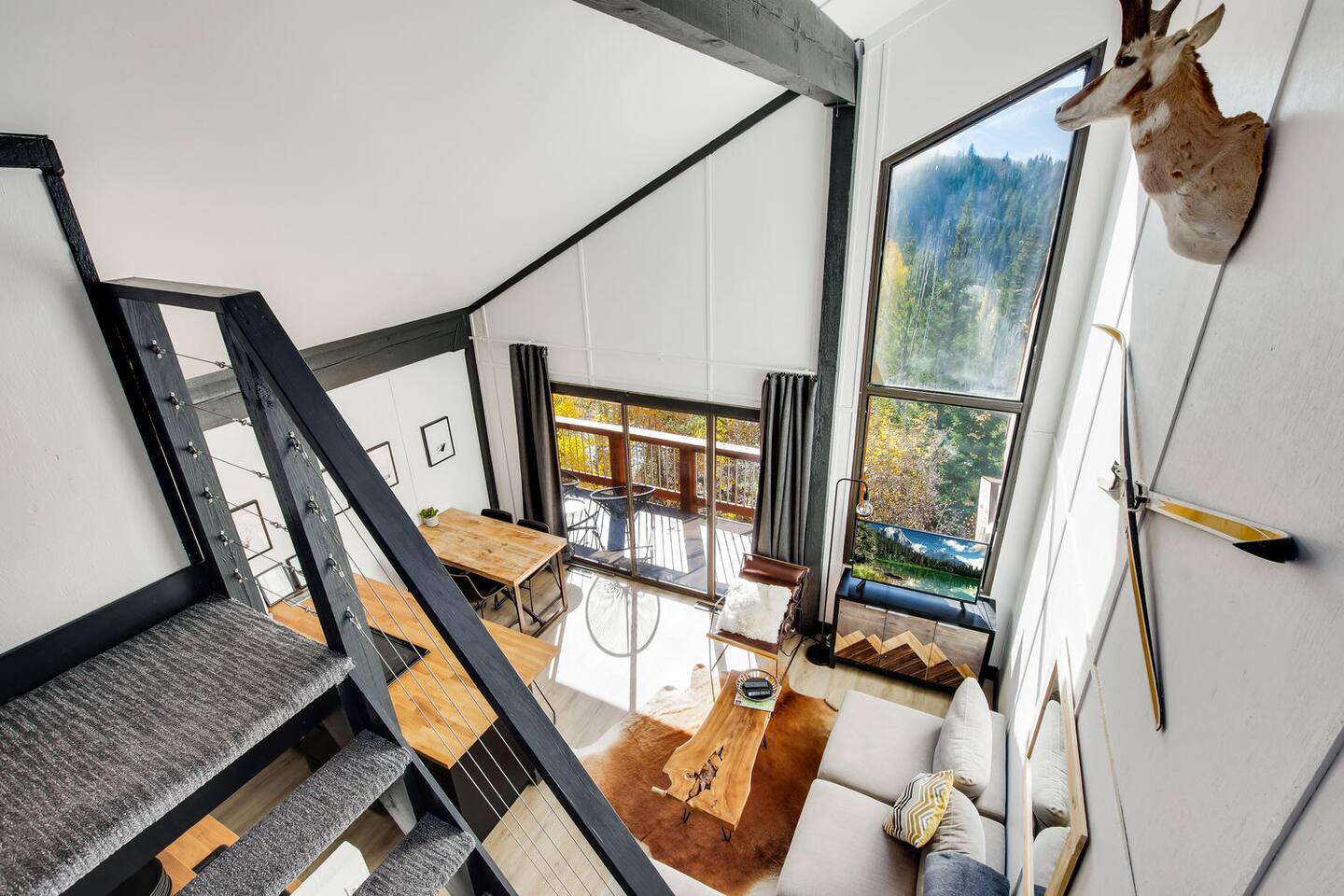 Decked out in a hip alpine-modern style, this small condo has everything you need for a perfect ski vacation or summer getaway. Watch the sunset from the balcony that is nestled among the trees or wake up to views of the ski area and choose your run for the day. This place is way cooler than your typical ski condo. Hiking, biking and cross-country trails are nearby. It is 2.5 miles to town and NOT ski-in ski-out, but there is a free bus to town/skiing.