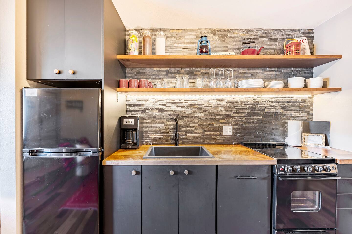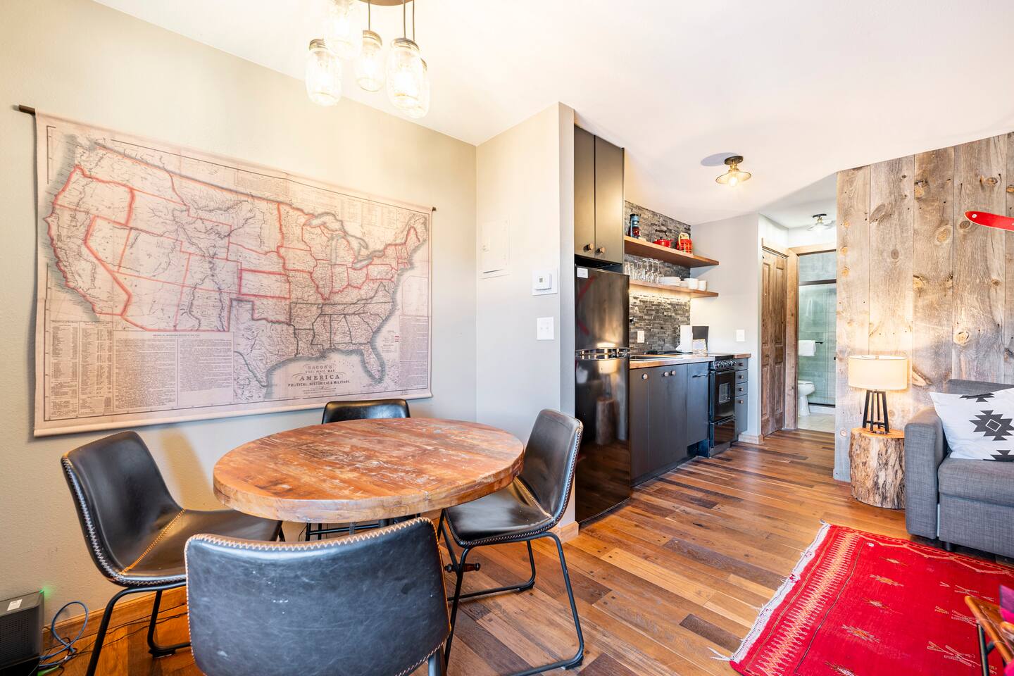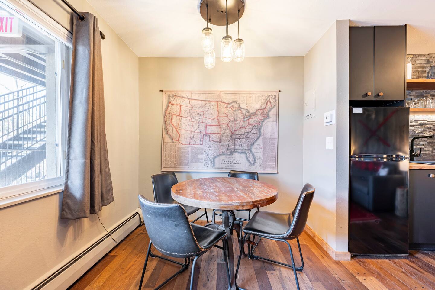 Freshly remodeled in a hip modern mountain style, our condo is in the heart of Breck. Wake up to views of the sun hitting the ski area. Gear up walk about a block across Main Street and to the gondola. At the end of the day, come home to the comfy couch (which also converts to a bed), watch a movie on the smartTV and cook up a full meal or hit one of the nearby restaurants. At the end of the night, the comfy King bed will leave you ready for your next day of adventure.